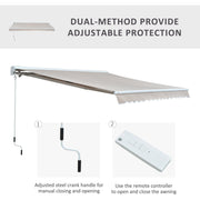 This Outsunny retactable awning is a great addition to your outdoor living space. The awning is electric and can be opened and closed using a remote, it can also be done manually if required using a 1.6m crank handle if required. The awning can be mounted on the wall and above entrances. It is designed to give you shade from direct sunlight and even light rain. Made from a polyester cloth with PU coating on a metal frame, it is an ideal system to have. The awning uses a half cassette system ensuring protection of the cloth when closed.