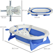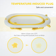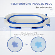 Make your baby's bathtimes fun and safe with this tub from HOMCOM. The curved and ergonomic design makes their cleaning time comfortable for them. It's fitted with a temperature indication plug, which turns White when the water reaches 37° - ensuring they won't burn - 37° being the best temperature to keep them in. The compact size, with folding legs, means it's easy to store and set up in the sink or your bath. It's finished with non-slip foot pads for extra safety and stability.
