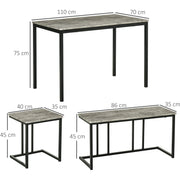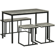 Go for the muted approach, no matter how small you space is - bring this compact and minimalistic kitchen table and chairs set from HOMCOM into your home. Modern dining room set comes with a dining table, two stools and two-seater bench - a must for dining and catching up with your family/friends. Metal frames mean each piece is strong and supportive, fitted with durable seat and table tops. When done, tuck in the seats and bench under the table.