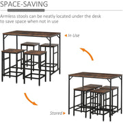 5pc Industrial Bar Table and Stool Set