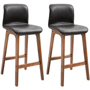 Let sleek and executive style make an impact beyond the office with these bar stools from HOMCOM. A set of two to create a matching look in your home, each chair is built with a solid and strong beech wood frame, crafted into a tall design with a bar on the bottom to place your feet. The kitchen stools with backs are filled with foam for comfort and faux leather upholstery all over for a luxurious finishing touch.