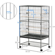 - Dimensions: 132H x 78L x 52Wcm. Bird cage: 95H x 78L x 52Wcm. Front door: 24.5L x 21Wcm. Side door: 10.2L x 10Wcm. Bottom tray: 3H x 74L x 50Wcm