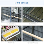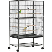 - STURDY ROLLING STAND: Effortlessly move this large parrot cage from one spot to the next. The 4 universal wheels make moving your feathered friend quick and safe. The bottom shelf can also be used to place some pet supplies.