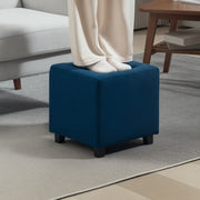 Blue Velvet Feel Square Ottoman Footstool with Padded Seat by HOMCOM