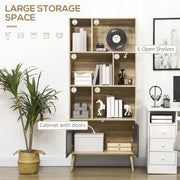 With its two-tone colour design, this HOMCOM is a stylish addition for all home and office spaces. Made from sturdy particle board, suitable for everyday use, with anti-tipping straps for safety. Features six open shelves for your books and more, with two bottom drawers to keeps things discreetly stored. Complete with wooden legs for support.