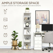 Have you always dreamed of having a real library at home, but are short of space? The bookshelf from HOMCOM can solve your problem. The compact design is space-saving, and 5 tier shelves provide spacious space for your different items like books, magazines, photo frames, and decorations. Besides, it can be used as a living room cabinet, study bookcase, or display unit. The modern and elegant appearance will match any decor in your home. Choose this bookcase, and make your home neat and tidy.