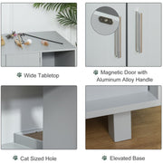 - EASY TO USE: The doors on our table cat box are magnetic and have an aluminum handle, so the store stays closed no matter the circumstance. magnetic doors with aluminum alloy handles make the washroom can be opened for quick cleaning. With a cat scratcher on the side and a hole in the side panel, your cat can have fun and access the cat house anytime they need to go.