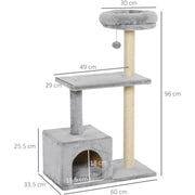 Grey 3-Tier Sisal Rope Cat Scratching Tree