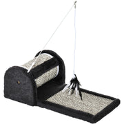 - MULTIFUNCTIONAL: Can be used as a scratching post or a bed for lounging. Features a feathered toy for when they're feeling playful.
