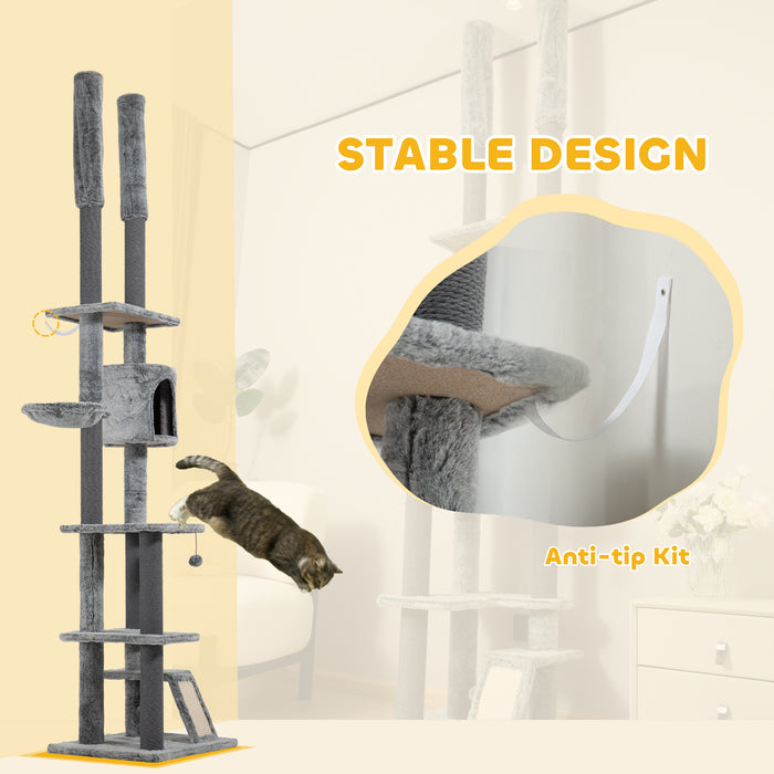 Floor to Ceiling Cat Tree with Ramp Scratching Posts and House for Large Cats 225-255cm by PawHut