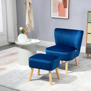 Contemorary Blue Velvet Accent Chair With Footstool