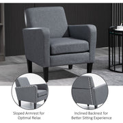 Grey Linen Single Armchair with Padded Seat