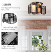 - Made up of 2 crescent fence style wire drawing shade and 2 glass lightshades (bulbs not included)