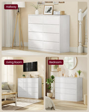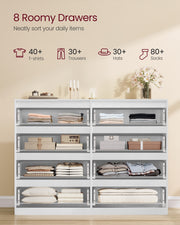 Designed with a clean white finish and 8 drawers, it's the perfect blend of practicality and modern charm for any home. Ideal for storing clothes, accessories or everyday essentials while doubling as a sleek display surface.