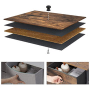 - Material: Particleboard Top, Steel Frame, Fabric Drawer Front