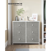 Introducing the Songmics Fabric Chest of 6 Drawers, a stylish and functional piece of furniture designed to combat the clutter of daily life. This chest is an ideal solution for anyone looking to restore order and elegance to their home, be it in the bedroom, hallway, or nursery.