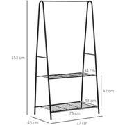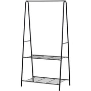 This stylish clothes rack from HOMCOM is an ideal solution for your extra storage needs. Designed in an A frame shape to add strength and stability, it comes with a top hanging rail and two wire shelves giving ample storage for clothes, shoes and boxes. Made from steel tubing with a powder coated finish with rust resistant elements making it easy to clean. This is a great item to have to keep things organised and tidy in any room in your home.