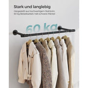 Upgrade your space with the SONGMICS Clothes Rack Wall Mount, a blend of industrial charm and practical design. Each rail, crafted from a robust 25.4 mm diameter steel tube, can hold up to 60 kg when mounted on a solid wall, making it ideal for heavy winter coats. The adjustable design allows for easy installation on different wall types, including drywall, with the flexibility to modify the distance between brackets based on stud spacing.