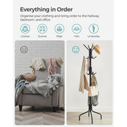 Introduce the SONGMICS Metal Coat Stand to your home or office, a stylish and practical solution for keeping your coats, scarves, hats, and more organised and easily accessible. This coat stand combines durability with a sleek design, perfect for space-saving and adding a touch of elegance to your entryway or any other space.