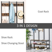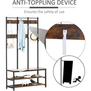 Keep your coats, outerwear, bags and shoes well organized with our industrial hall tree shoe bench from HOMCOM. This garment rack with 12 hooks for hanging your coat and 3-tier shoe stool for placing shoes or offering seat when changing your shoes. Crafted from MDF board with metal frame, it is durable in use. Equipped with anti-toppling device, it will be stable and safe. Buy it and you'll never misplace anything again!