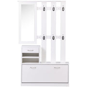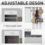 This Homcom show storage with wall hangers is a great solution by an entrance or hallway. The 3 in 1 systems offers everything you need, from a place to keep your shoes, a mirror to see your self before you leave and a wall hanger to keep your jackets and coats. Made from a particle board construction and ample storage space, this design can live perfectly within any home and decor.