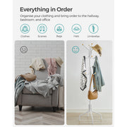 Introduce the SONGMICS Metal Coat Stand to your home or office, a stylish and practical solution for keeping your coats, scarves, hats, and more organised and easily accessible. This coat stand combines durability with a sleek design, perfect for space-saving and adding a touch of elegance to your entryway or any other space.