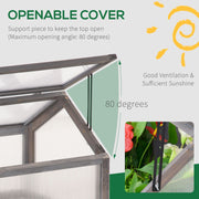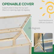 Discover the perfect way to nurture your plants with Outsunny's small wooden greenhouse. With a solid wood frame and transparent polycarbonate panels, it keeps plants warm and provides maximum light. The roof opens to ventilate and provide easy access to your plants. The 90x52cm size is perfect for gardens, patios, and balconies, and the sloping design prevents water build-up. Plus, the wooden frame is coated for outdoor use. Enjoy fresh produce and beautiful blooms all year round with this practical and stylish cold frame design.