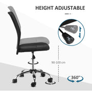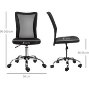 Keep comfortable while working all day with this Vinsetto executive office chair. The mesh office chair is fitted with a thick sponge to cushion and comfort your body while seated, and the mesh on the back is breathable. Slightly curved on the desk chair's back for support as you lean back, the solid base is fitted with five wheels, so you can move around easily. Without an arm, the swivel chair fits underneath your desk at any height, and the compact design is ideal for small places.