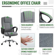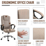 Sit back in superior style as you work the day away with this office chair from . It's wrapped in khaki-coloured linen which is soft, breathable and easy to clean. Wide in design to give you plenty of space to sit, its ergonomic features included a high back, swivel base, wheeled bottom and high armrests. You can adjust the height via the lever below the chair to set to a good working level. A sophisticated choice for long ahead.