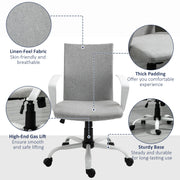 Light Grey Linen Swivel Office Chair, Adjustable with Arm