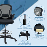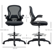 This mesh office chair, from Vinseto, comes in a draughtsman design - ideal for working at higher levels. Adjust the height between 52-72cm easily, thanks to the under-seat lever. The padded seat, curved mesh back, flip-up arms and five-wheeled base make it a pleasure to sit on and use, supporting you as you work. Adjust the bottom bar to rest your lower body comfortably. Tall surfaces? No problem!