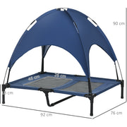 Large Raised Dog Bed with Canopy, Blue - (92x76x90cm)
