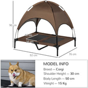 Large Raised Dog Bed with Canopy, Coffee - (92x76x90cm)