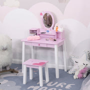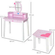 - KID VANITY TABLE SET: This kid-sized makeup table and stool with cartoon patterns and vivid colours fulfil the princess dreams of every little girl. A beautiful addition to your kids bedroom, kindergarten and day-care centre.