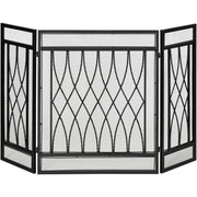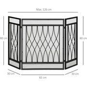 3-Panel Folding Fireplace Screen, Metal Mesh, Black