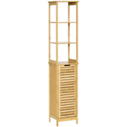 This tall yet narrow bathroom cabinet from kleankin is classic and a perfect accompaniment to various spaces and home styles. The design of 3 shelves and 1 cabinet, gives convenient and independent storage spaces for multiple people or different needs. Not only every-day essentials, you can display aromatherapy diffusers, candles and other adornments on the shelves, building a warm atmosphere. Let's enjoy a hassle-free morning and a relaxing after-work time with this stylish floor stand.