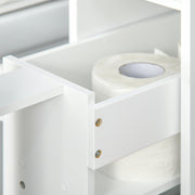 Maximise space and minimise clutter with this bathroom cabinet from HOMCOM. Made into a slimline design that measures just 17cm in width, it will fit into a wealth of spaces, making it great for even the smallest of bathrooms. Crafted from MDF with a fresh White paint finish, this unit is built to be a mainstay in your home furniture for years to come, with it featuring a large slide out bottom draw, a top draw and a top compartment, allowing you to store all your toiletries, towels, make-up and more with ease. Beautifully simple, it will blend into all style decors seamlessly.