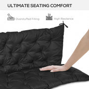 Black 3 Seater Garden Bench Cushion with Ties - 98x150 cm
