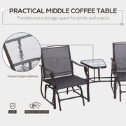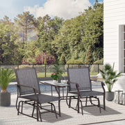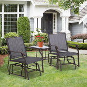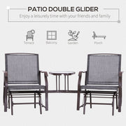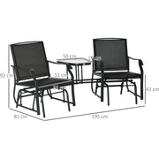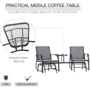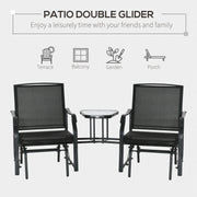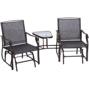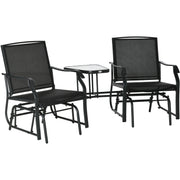 Enjoy your relaxation time with a friend thanks to this chair duo from Outsunny. Made from steel for strength and reliability, it is crafted in a smooth, individual gliding design to allow you to drift away peacefully at your own pace. Sitting on each seat is a mesh cover, keeping you comfortable and allowing your skin to breathe all day long. Made from glass, not only is the table perfect for keeping drinks, books and food conveniently close to hand, but it also is easy to clean and maintain. Whether It's for relaxing with a friend or by yourself, this seat duo is perfect for taking a well deserved rest.