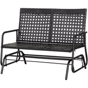 2 Seater Glider Garden Seat, Black Rattan Weave