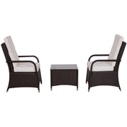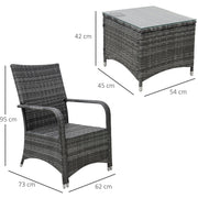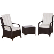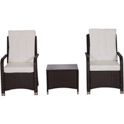 We do not ship to BT/Guernsey/ Jersey/ the Isle of Man/ Northern Ireland or call for shipping charge. This outdoor bistro set made of PE Rattan is a great solution for your garden, Patio or Balcony. Made with an aluminum frame structure and covered with rattan, it is an ideal set to have. Comes with two seats with cushions and a table with a glass top to place drinks of magazines. It has a modern design to fit into any decor€™ of your home and garden.