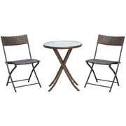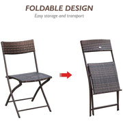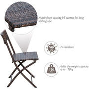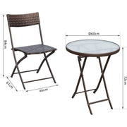 This 3-piece rattan garden furniture bistro coffee set from Outsunny is an ideal solution for your garden, patio or balcony. Made with quality steel tubing and covered with PE rattan, it will last for years to come. The set consists of 1 table and 2 chairs, a suitable addition to any home with limited space. The whole set can be easily folded and stored away to create more space when not in use. Enjoy the day drinking coffee and reading your favourite book at your very own rattan garden furniture set.
