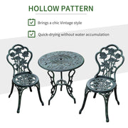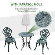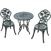 The bistro sets for 2 for garden will be a great addition to any patio area with its elegantly antique design. It is made from sturdy rust free cast iron and cast aluminum and molded into an antique green look. The legs of the table and two chairs are made of sturdy iron, which provides a stable place to rest. Whether in your backyard, patio, deck or even your restaurant outdoor dining space, you'll enjoy these garden bistro sets for years to come.