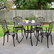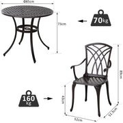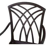 • CAST ALUMINIUM FRAME: Sturdy, resistant to rusting and tough, is reliable for outdoor use all-year round. Chair backs are moulded into an attractive cut out design.