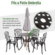 No matter how short you are on space in your home and outdoors, this five-piece Stamford set from Outsunny will give you the perfect spot to dine and relax. It's formed of four bistro chairs and a matching table, with cast aluminium forming the frame of all three pieces to ensure they are sturdy and tough, as well as being resistant to rusting and mild everyday wear-and-tear. Round in shape, the table features a middle hole to keep a sun parasol securely in place, with the back of the chairs showcasing a cut-out design for an attractive finish whether seated or not. Ideal for flats and apartments with balconies.