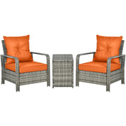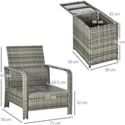 Experience the joy of outdoor relaxation with this Outdoor Rattan Bistro Set. This three-piece set includes two spacious armchairs and a matching table, all constructed with a sturdy steel frame wrapped in hand-woven PE rattan. The set features thick padded cushions for comfort and removable, washable seat covers for easy maintenance. With a discreet storage compartment in the table and protective foot pads, this set combines functionality with style. Enjoy comfort, durability, and elegance in your outdoor space.