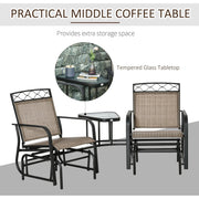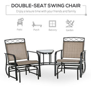 Whether it's for the patio, conservatory, or balcony, this outdoor glider chair for two from Outsunny is ideal for relaxing the day away with your friend. Ergonomically designed, both rocker chairs are comfortable with their curved seats and fabric mesh covers. Fixed in the middle of the seats is the glass-top table to put coffee cup and more. Enjoy leisure time outside, gently gliding the day away.
