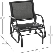 Glide the day away ever so smoothly with this garden rocking chair from Outsunny. Using steel for a structure which is durable and supports up to 120kg, our outdoor rocking chairs for adults are crafted into a unique swinging design, which moves back and forth gently - perfect for those relaxing afternoon naps. And the garden seat features a curved back, mid-rise armrests and breathable mesh fabric on the seat and back, allowing your skin to breathe easily. Finished with anti-slip feet.