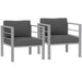 Set of 2 Modern Garden Armhairs with Cushions and Metal Frame for Patio or Balcony Charcoal Grey