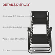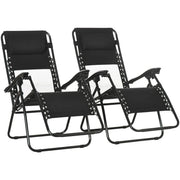 It's time to lounge and relax with Outsunny. This set of two zero gravity chairs are here to elevate the body in a comfortable position, for you to soak up the sun all afternoon long. A powder coated steel frame for a strong core, the frame can be folded so you can carry and store it easily. Comes with a fabric seat, with padded top pillow to rest your head. The back is freely adjustable to any angle you want - with a lock to fix the chosen position in safely.